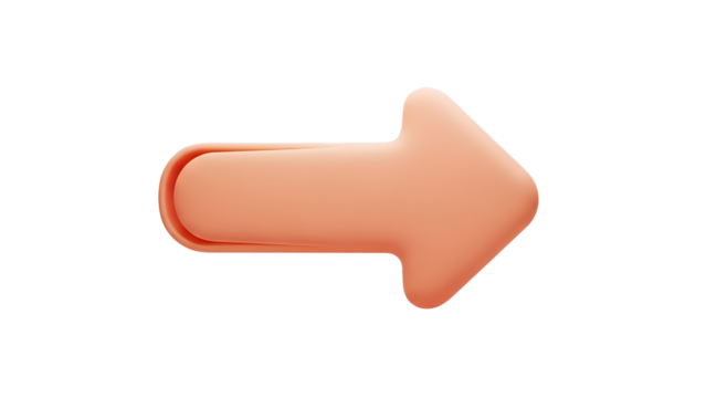 Orange 3D Rendered Arrow Pointing Right isolated PNG with Transparent Background