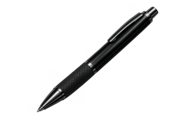 Black metallic ballpoint pen with clickable mechanism and textured grip for writing and signing documents