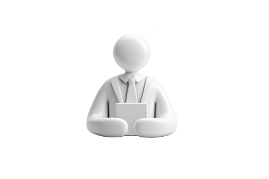 Modern reception desk with textured blue surface and integrated digital screens, isolated on transparent background