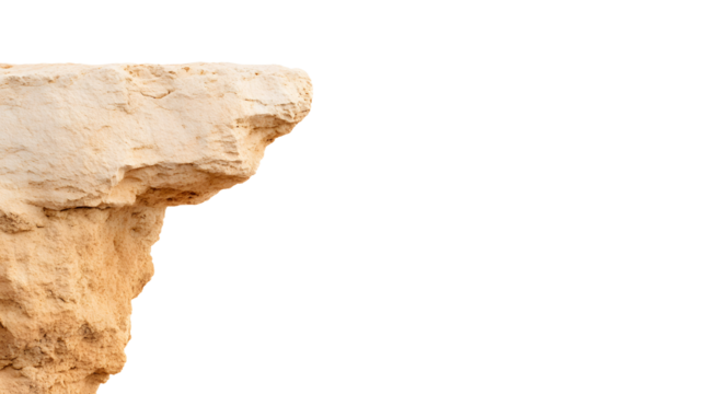 Dramatic rocky cliff edge against a stark background, showcasing texture and erosion. Great for landscapes, nature backgrounds, or geological studies.