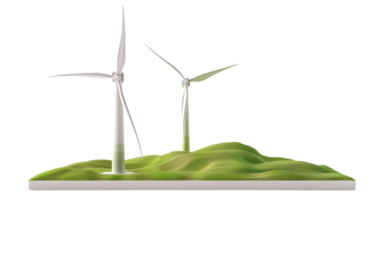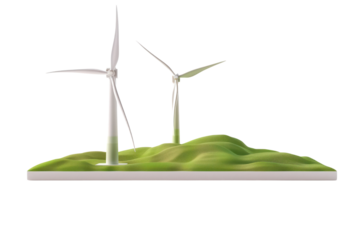 Illustration of wind turbines on a grassy hill, representing clean energy and sustainable power generation.