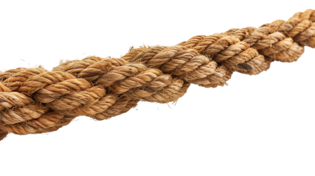 Caucasian businesswoman holding rope with dreamy expression on transparent background