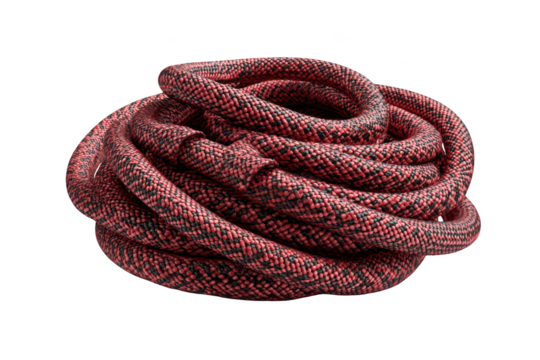 Mountain with staircase to the summit with red flag, concept of steps to success, isolated on transparent background