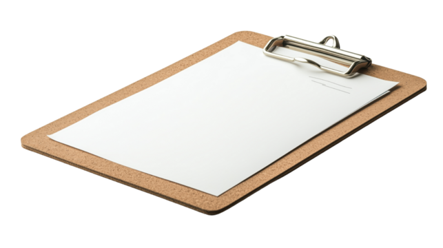 Blank Clipboard with Paper Isolated on a Transparent Background for Mockup