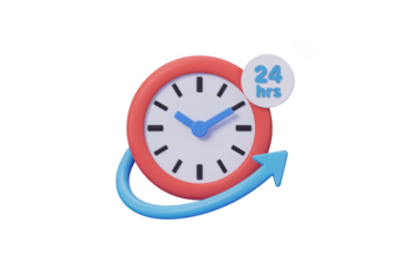 Transparent digital white clock illustration with red hands