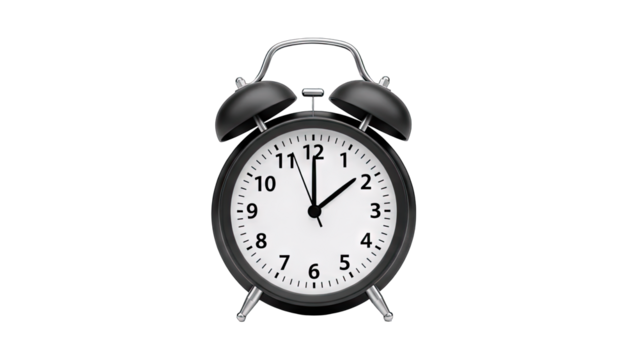 Vintage yellow alarm clock closeup view, time management, cut out transparent