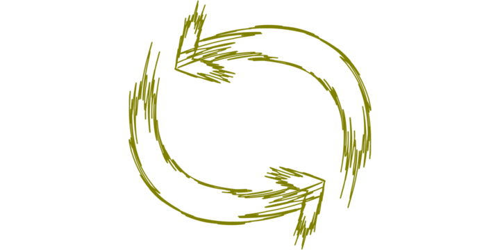 Circular arrow suggesting repetition or refresh, featuring a hand-drawn aesthetic with a transparent background