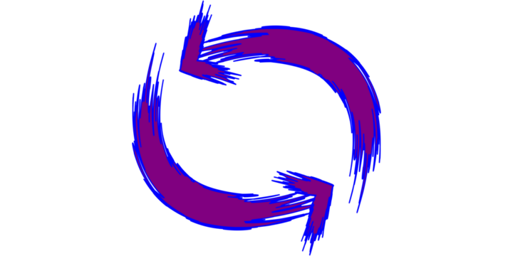 Two purple arrows with blue outlines forming a circular motion on a white background.