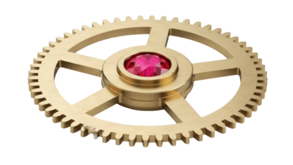 Intricate clockwork mechanism with gold and silver gears isolated on a transparent background