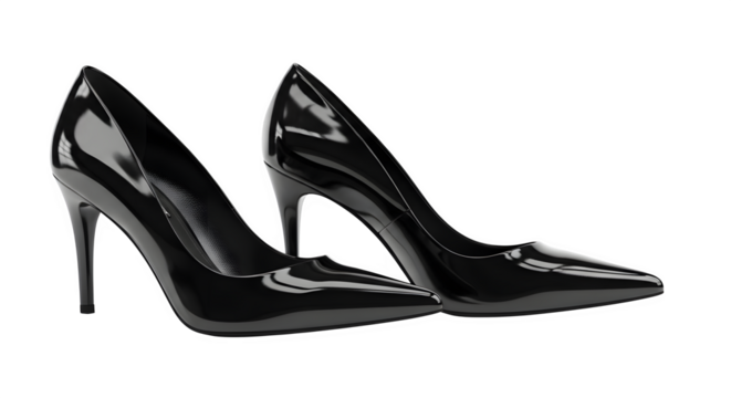 Black high heeled shoes isolated on transparent background