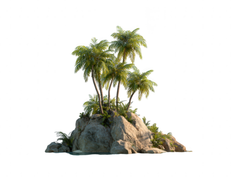 Isolated Tropical Island Paradise Palm Trees on Rocky Outcrop for Relaxation and Vacation Vibes