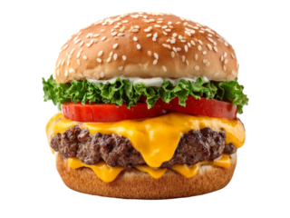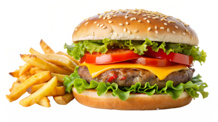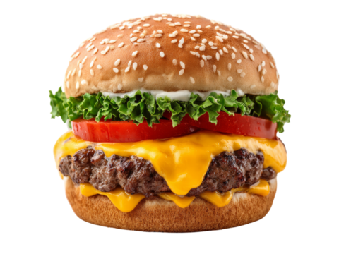 Delicious cheeseburger with lettuce and tomato on transparent background