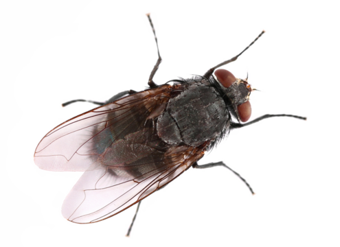 Fly insect isolated on white, top view