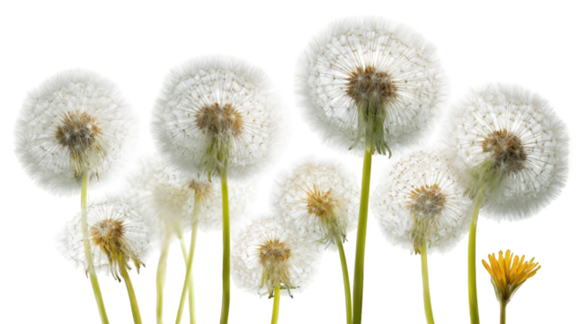 Minimal dandelion seedhead on transparent background, botanical symbolism