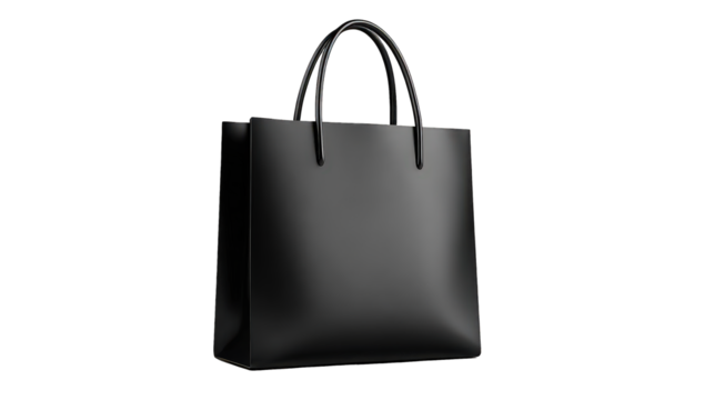 Black Leather Tote Bag with Braided Handles on Transparent Background