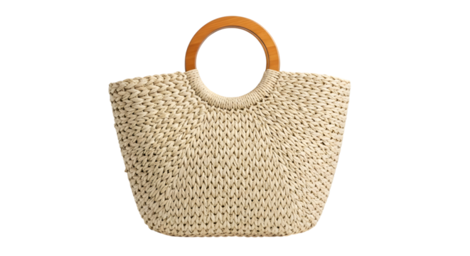 Wicker handbag with leather flap isolated PNG with Transparent Background