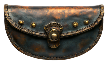 Teal leather clutch featuring metallic silver hardware, professional accessory design against transparent backdrop