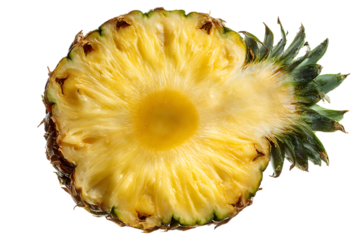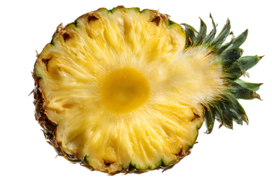 Round Pineapple Slice with Core Removed on White Background Isolated on Transparent Background