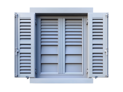 White louvered window shutter illustration isolated on white background. Perfect for architectural designs and home decor projects.
