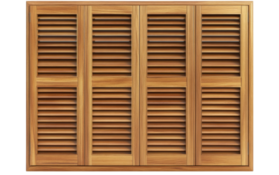 Wooden louvered shutters on white background,png