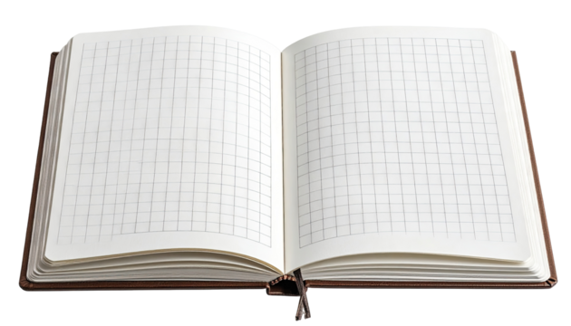blank hardcover book with open pages and closed cover mockup for publishing education isolated on white background