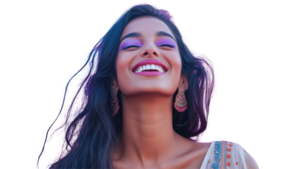 Happy young woman covering her ears from loud noise isolated PNG with Transparent Background