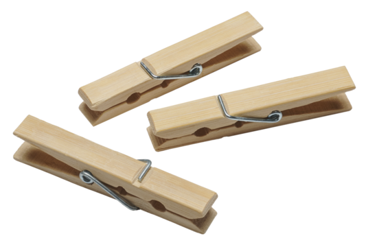 Wooden clothes peg on transparent background for laundry and domestic uses