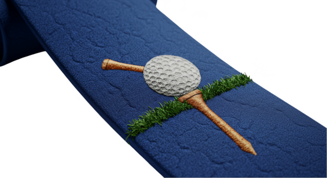 Isolated Golf Ball On Tee Patterned Blue Fabric Tie Background