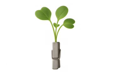 Blank white paper hanging on a clothesline with wooden clothespins isolated on transparent background