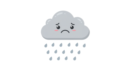 Sad cartoon cloud character on transparent background