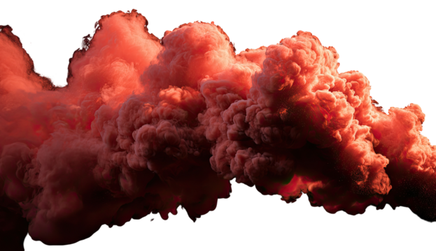 A vibrant, coral-hued cloud of smoke against a black background.  The smoke has a fluffy, textured appearance, with varying densities and highlights