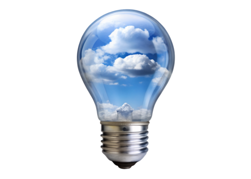 Light bulb with clouds and arrows on transparent background