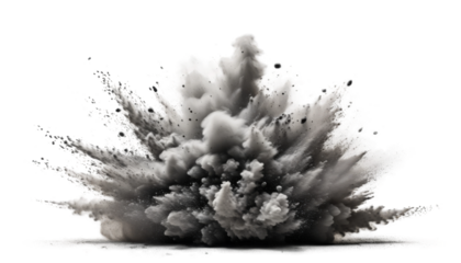A large cloud of gray smoke billowing and swirling against a bright white background in a studio setting