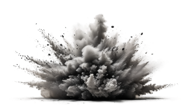 A ceramic ornament bursts apart, sending shards and a cloud of dust into the air, showcasing the effects of rapid impact in a controlled setting