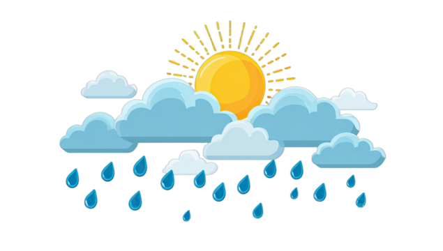 Sunny and rainy weather icons with clouds, sun, and rain