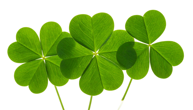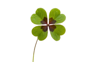 Green four-leaf clover with transparent background for luck and happiness