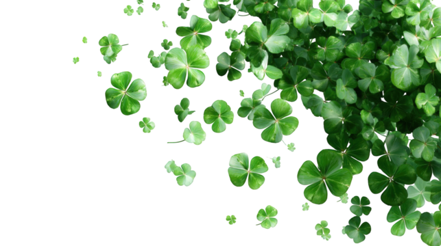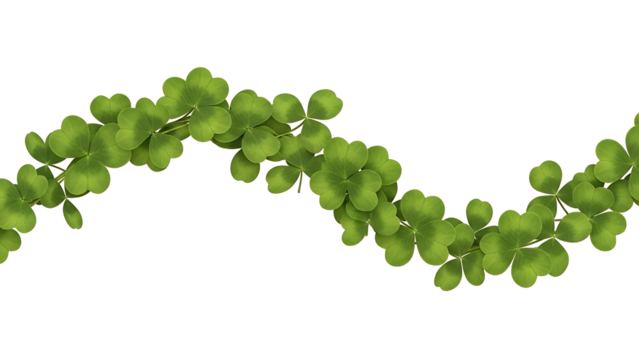 A waving string of green shamrocks, perfect for st. patrick's day decorations isolated on transparent background