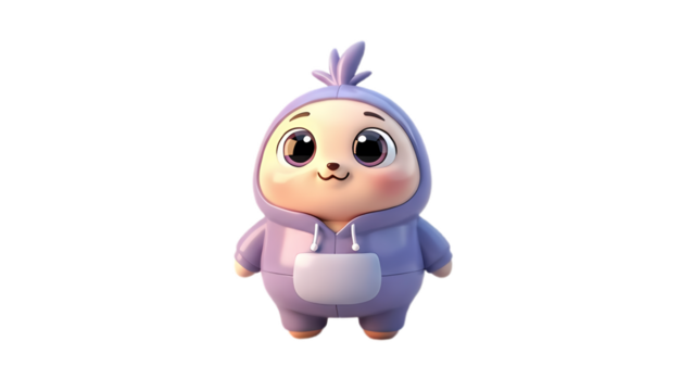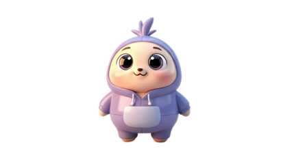 Colorful clown doll with bright red curly hair, wearing striped shirt and colorful overalls, stands cheerfully against transparency background. This cute doll evokes sense of joy and playfulness