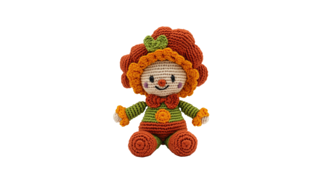 Adorable Crochet Clown Doll in Autumnal Hues Handmade Toy for Children