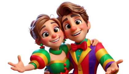 3D-rendered clown heads arranged on white background depicting humor and amusement ideal for entertainment content