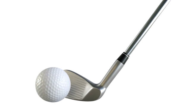 Golf club about to strike golf ball isolated on a white background png ai generated