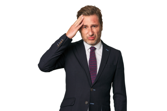 A middle-aged businessman isolated being shocked, she has remembered important meeting.