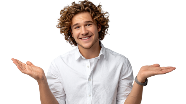 Portrait, man and hands up in confusion, ignorance and isolated transparent png background. Male person, lost and clueless with shrugging shoulders with squinting expression, doubt and frown