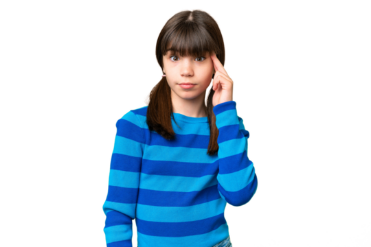 Young Uruguayan woman over isolated chroma key background thinking an idea while looking up
