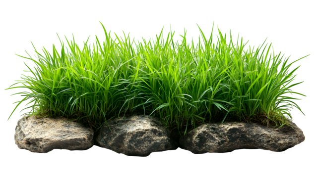 A lush clump of green grass isolated on a transparent background