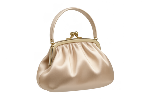 Elegant champagne clutch bag with gold clasp isolated on transparent background
