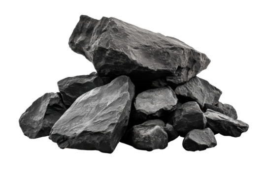 Diverse collection of coal and mineral varieties isolated on white background - png set transparent background