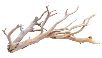 A beautifully shaped piece of driftwood with intricate branches and textures. natural artistry. ideal for home decor or artistic projects. set against a clean white background