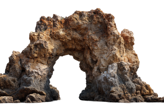 Scenic rock arch near water isolated on transparent background