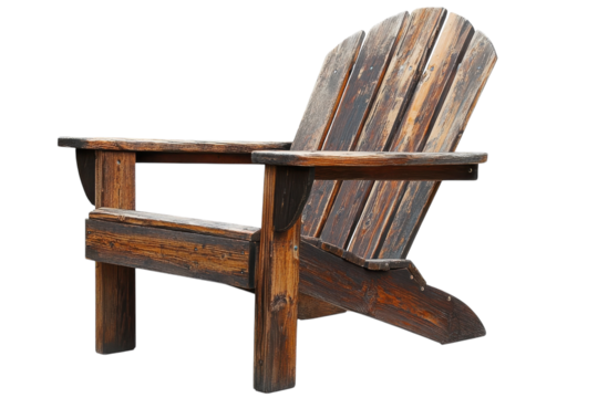 Wooden Adirondack chair designed for outdoor relaxation and comfort in a tranquil setting